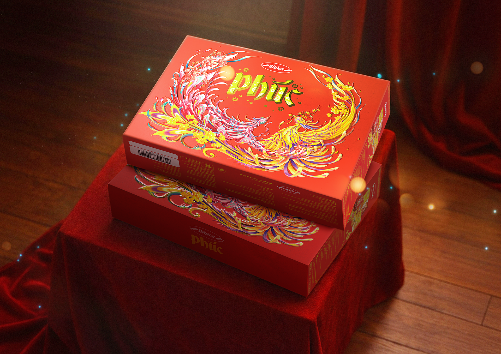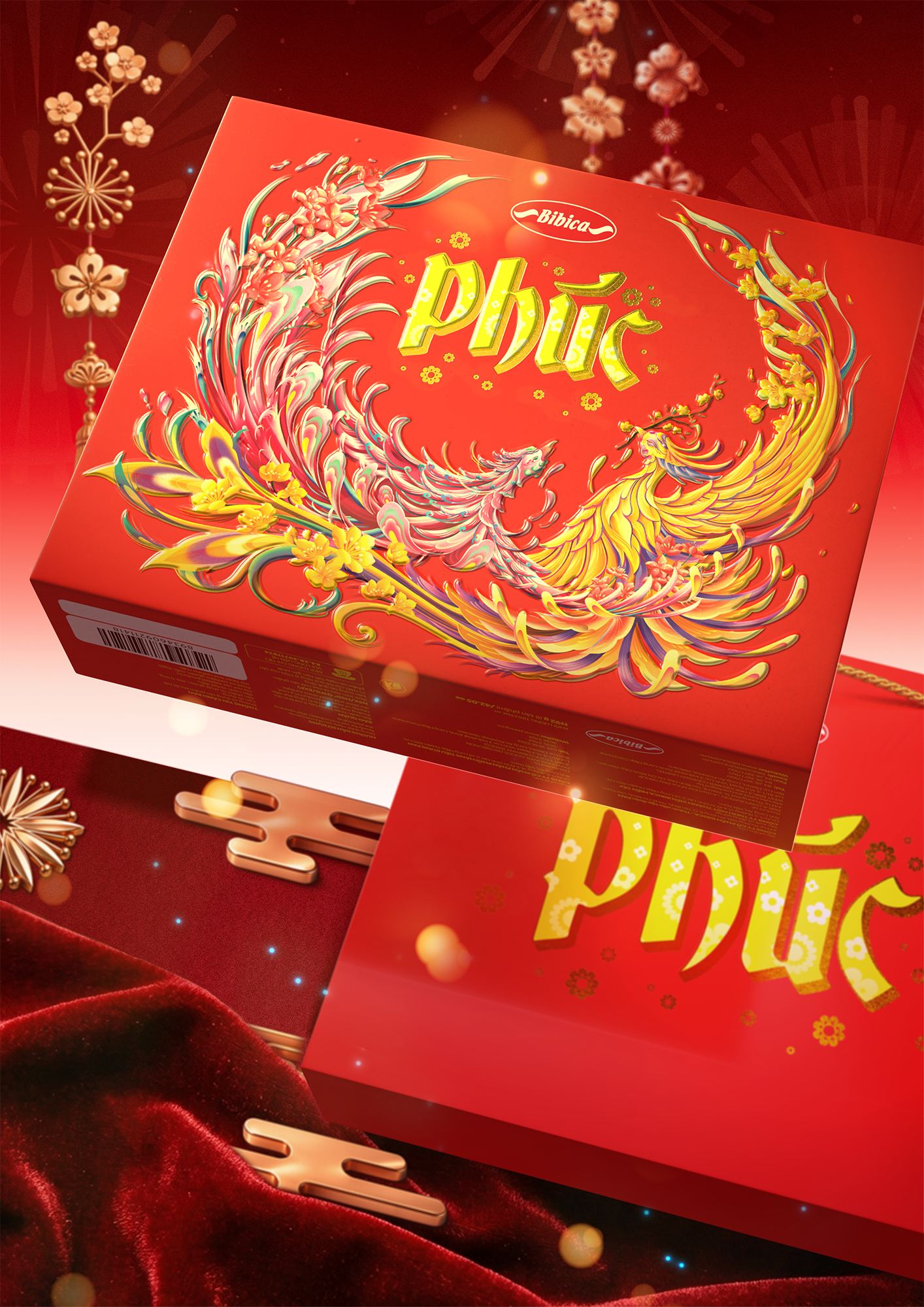 The packaging is built upon the classic motif of “Lưỡng Phụng Triều Dương” (The Twin Phoenixes Greeting the Sun) — a timeless symbol in Eastern art, often found in imperial settings and works created to convey auspicious blessings.