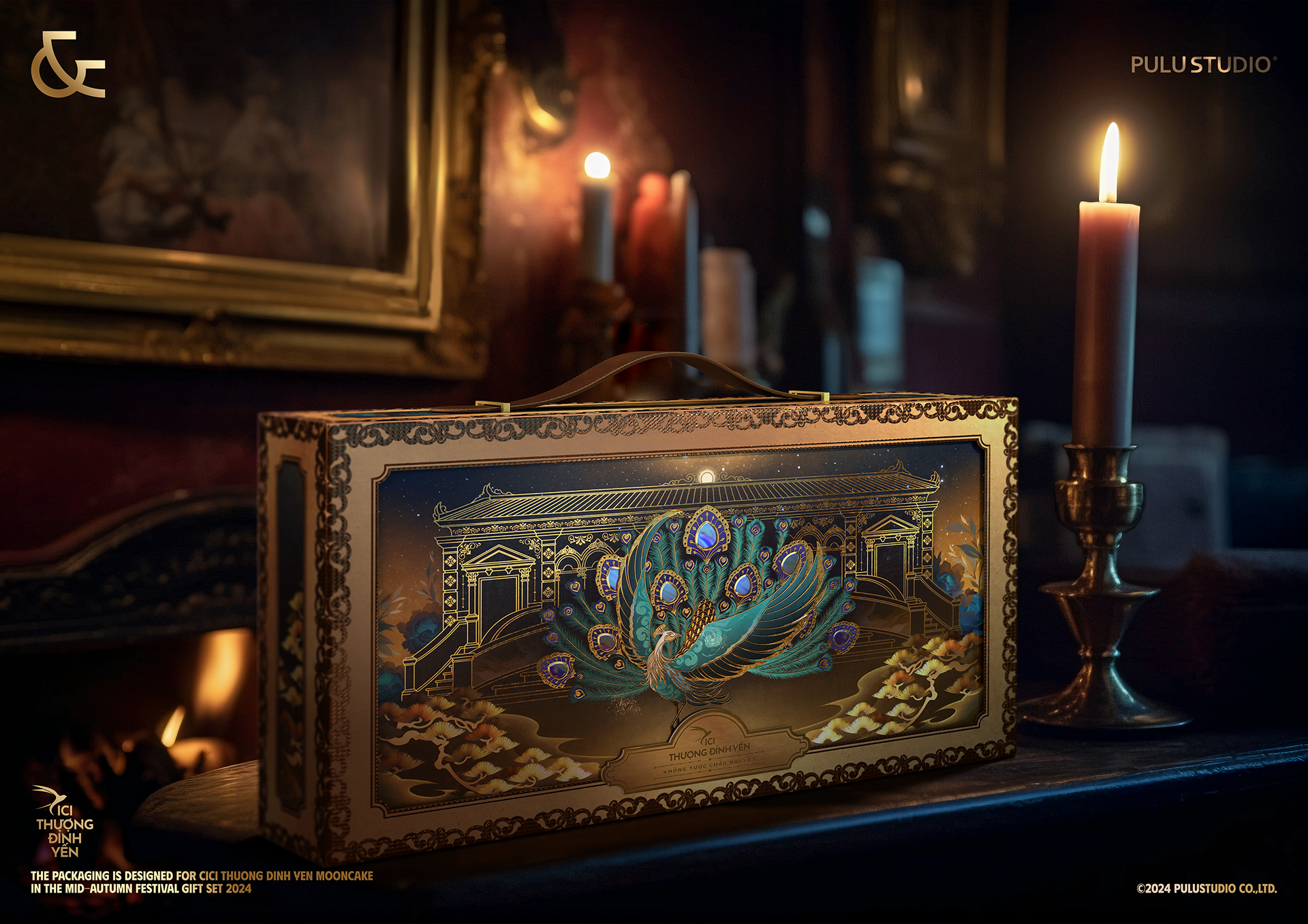 By combining traditional elements such as peacocks, ancient houses from the French colonial period, green peonies, and gilded bonsai trees, we hope to bring a truly luxurious gift set with a royal feel.