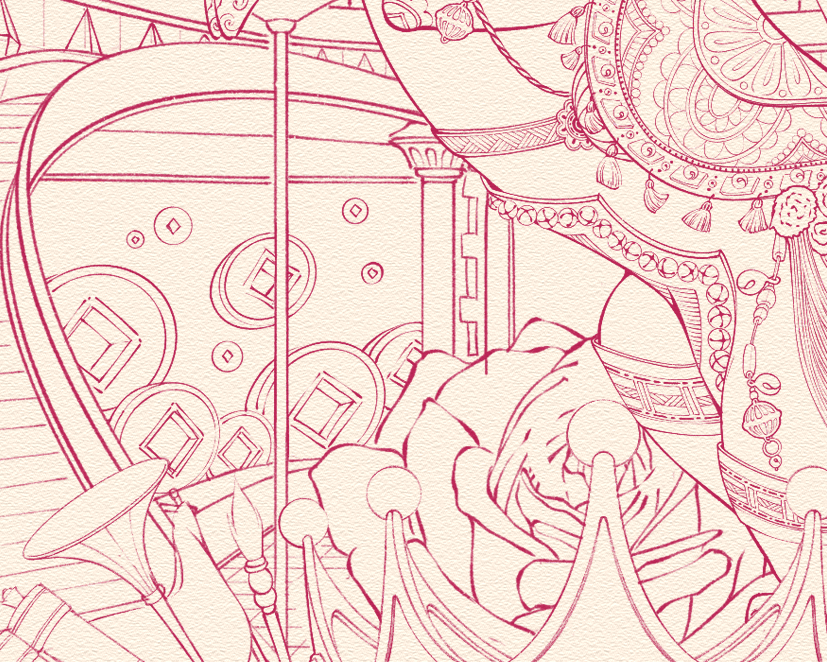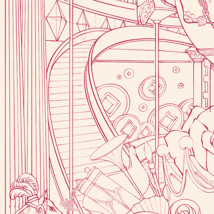 The Apothecary piece is more than a depiction of herbal medicine; it is a visual metaphor for masculinity. This gentlemen’s pharmacy is rendered through traditional aesthetics, where subtle details—such as phallic symbols integrated into the cabinet handles—speak to virility. With an all-male staff and an infinite array of medicinal ingredients, the space is meticulously crafted to be a sanctuary of pure Yang energy.
