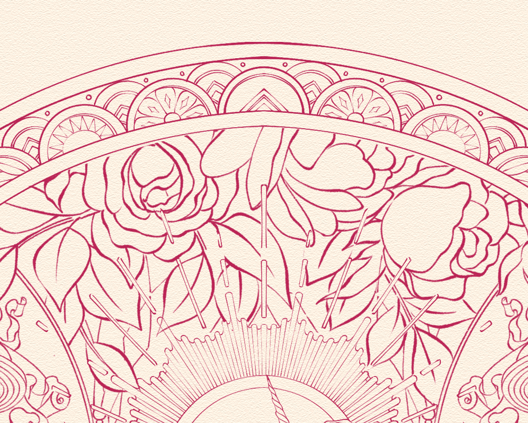 Bên cạnh đó, Hoa Hồng - biểu tượng vinh quang của Châu Âu cũng được thêm thắt vào vô cùng tinh tế. Trong nghệ thuật phương Tây, hoa hồng không chỉ là biểu tượng tình yêu, mà còn là vương quyền, chiến thắng, danh dự và tước vị. Hoa hồng xuất hiện dày đặc trong các huy hiệu hoàng gia châu Âu, trong tranh Baroque & Renaissance và ngay cả các nghi lễ vinh danh hiệp sĩ và quý tộc cũng được dùng hoa hồng đỏ thẫm để trang trí.