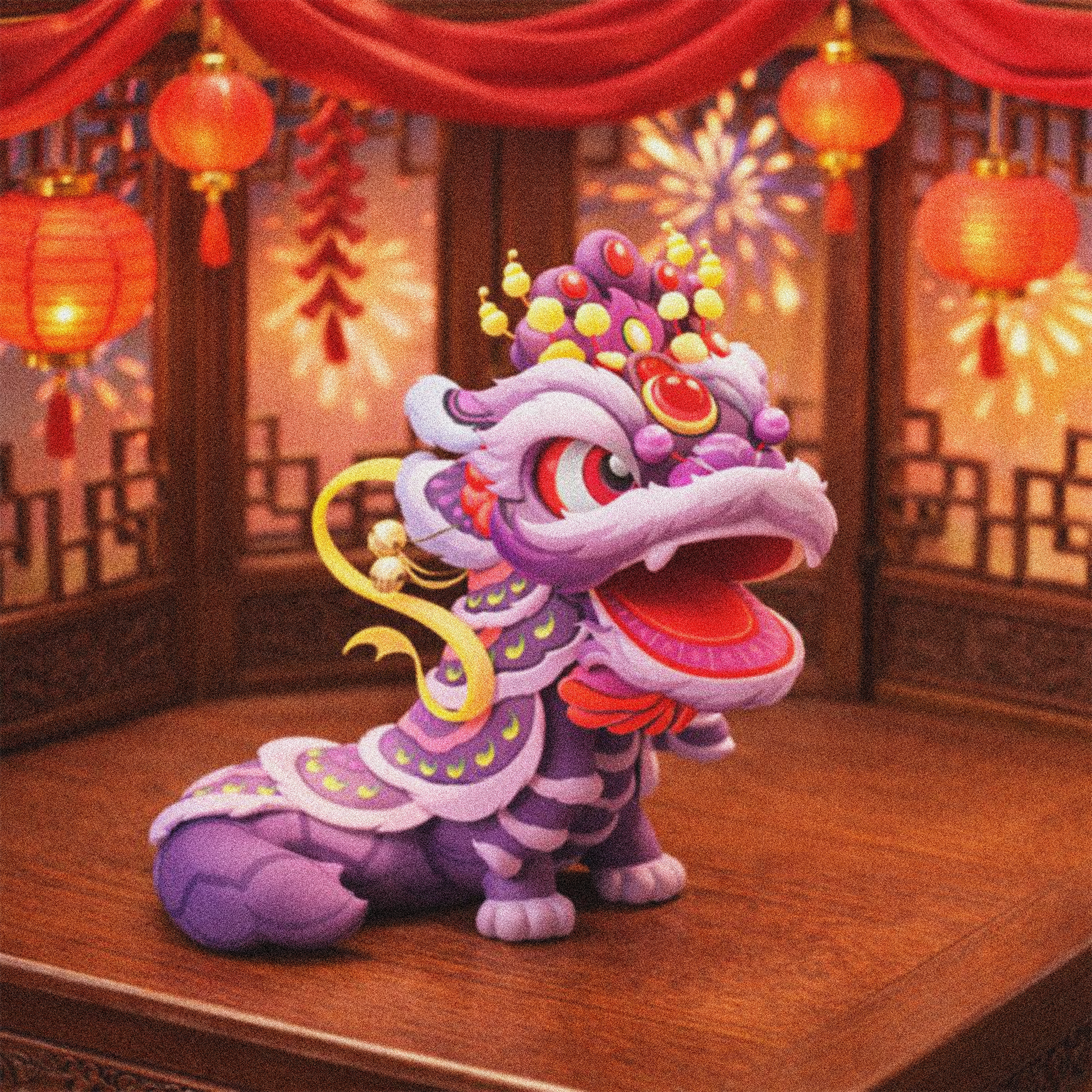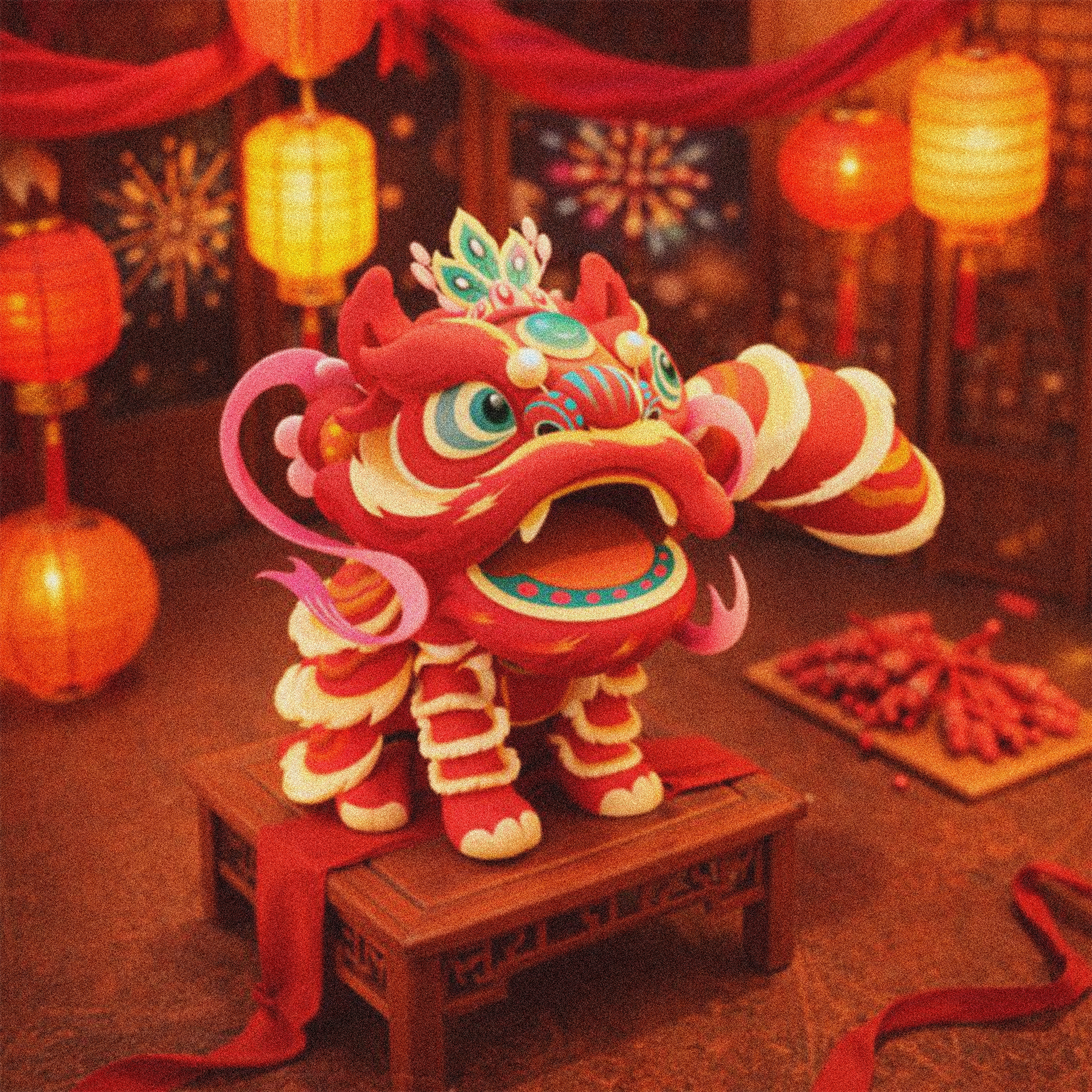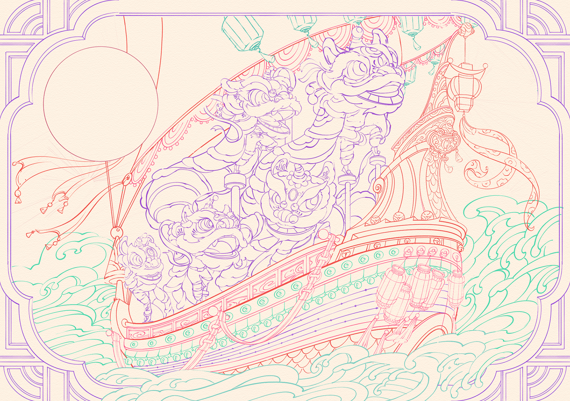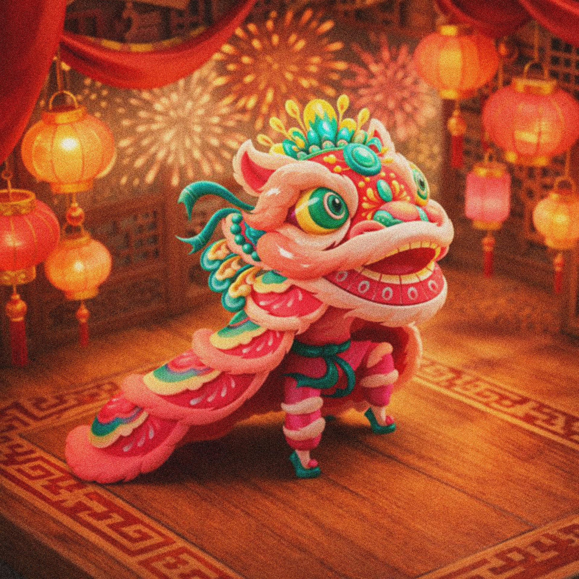The Five Lions, poised upon a festival vessel, sweep across the waves with hearts alight in joyful anticipation. The design brimming with life and motion, it gently stirs the senses — allowing the festive rhythm and uplifting spirit to be felt at first sight, like the echo of celebration carried on the wind.